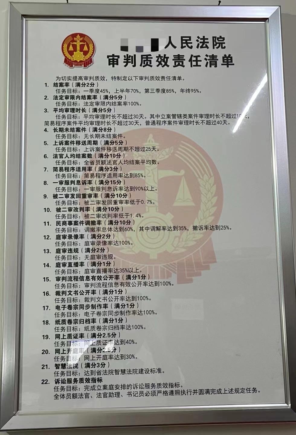 Di seguito la traduzione di una tabella, affissa in tutti i tribunali popolari cinesi, fondamentale per l’amministrazione della giustizia e che ispira la ratio di molte decisioni del giudice.